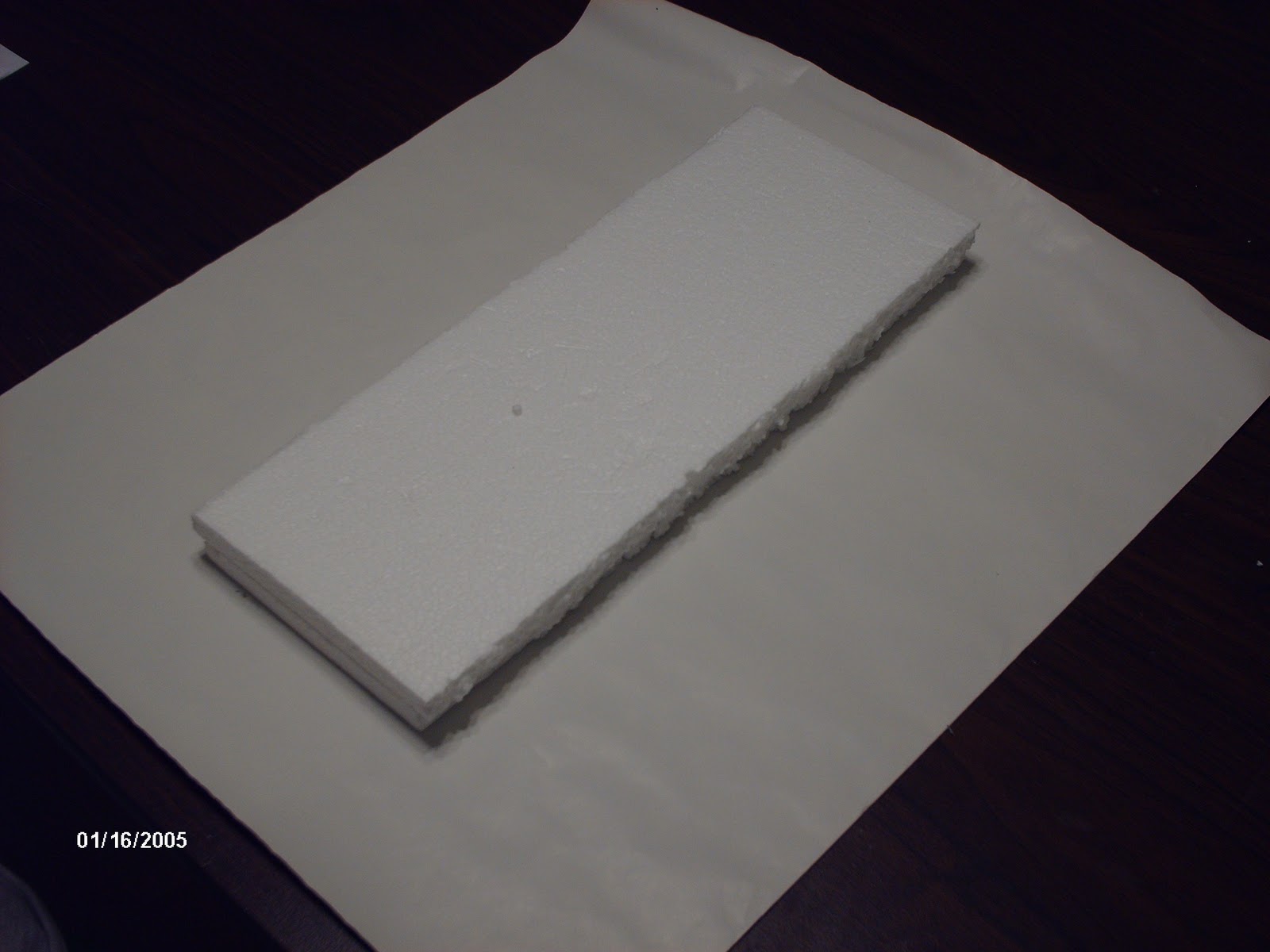 Dos pedazos de Poliestireno expandido (checa el link para que veas cómo se dice en tu país, cortesía de Beatriz Reyes, gracias Bea!) de 35cm de largo x 11cm de ancho x 3cm de alto aproximadamente. *Si no lo consigues, puedes usar una de esas bases verdes para arreglo floral.